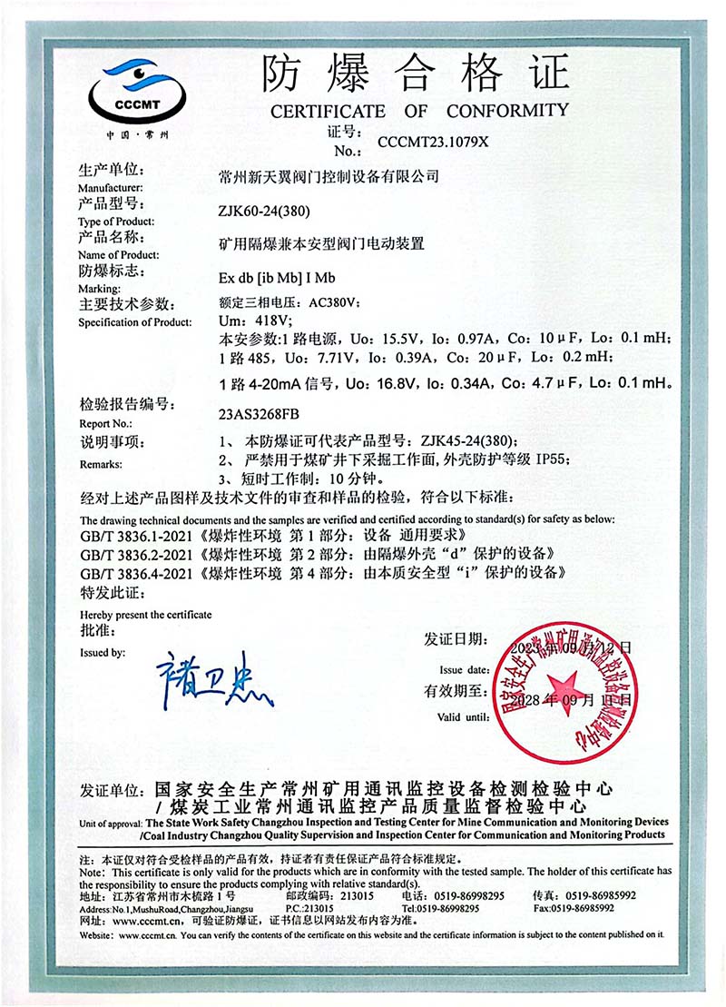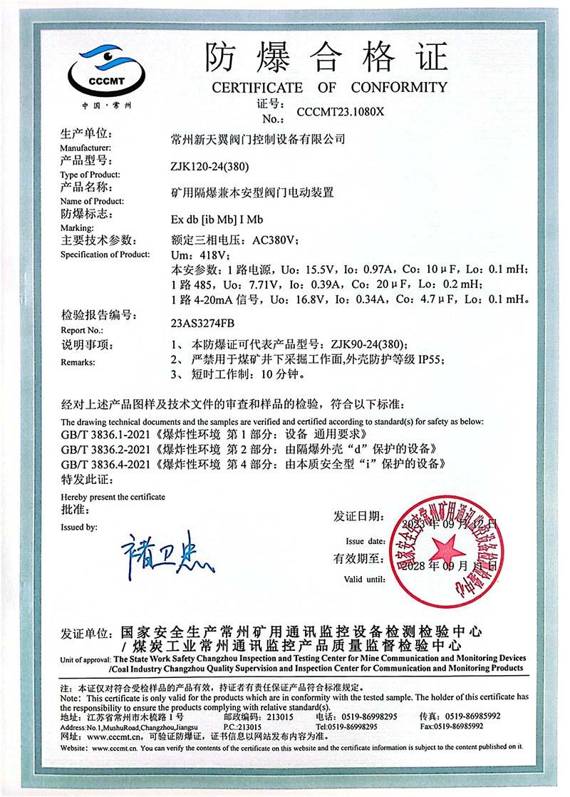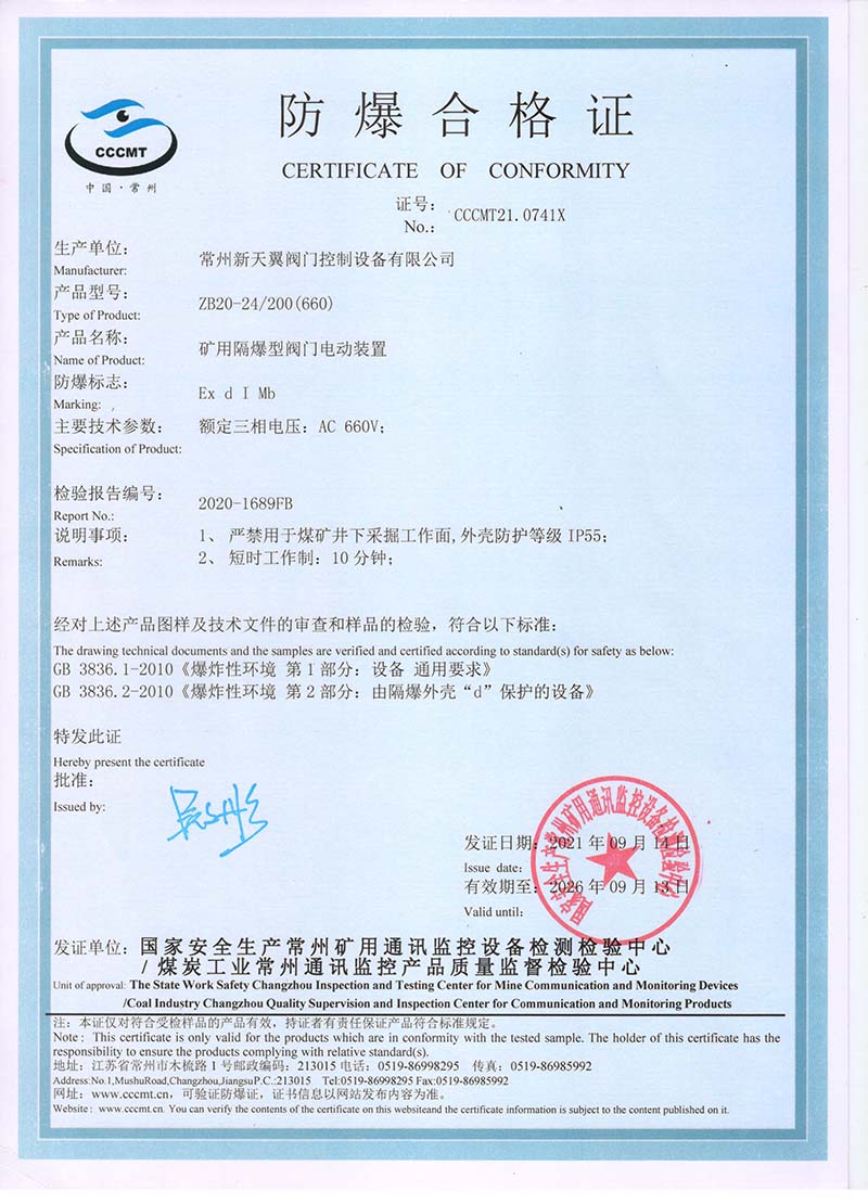 ZB20-24 200(660) 防爆合格證